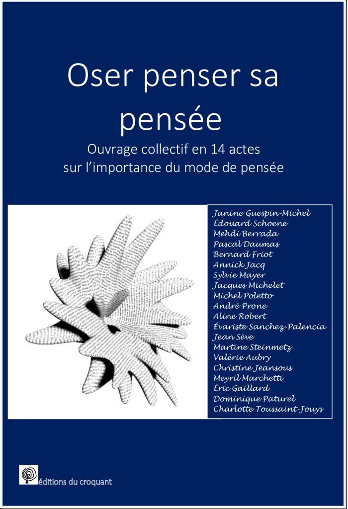 Penser sa pensée, c’est porter attention au mode, à la forme de sa pensée. Nous affirmons, que, contrairement à une idée reçue très fortement ancrée, cette forme, ou mode, n’est pas innée, et que le mode dominant en occident représente un frein à la compréhension du monde, notamment pour ceux et celles qui veulent le transformer. Oser penser sa pensée, c’est oser aller à l‘encontre de cette idée reçue, c’est oser s’aventurer dans un domaine le plus souvent inconnu, et c’est le préliminaire à l’appropriation d’un mode de pensée plus efficace dans la société actuelle.